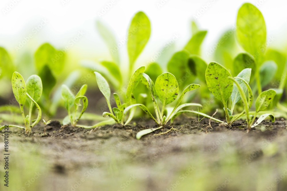 green salad seedlings in greenhouse