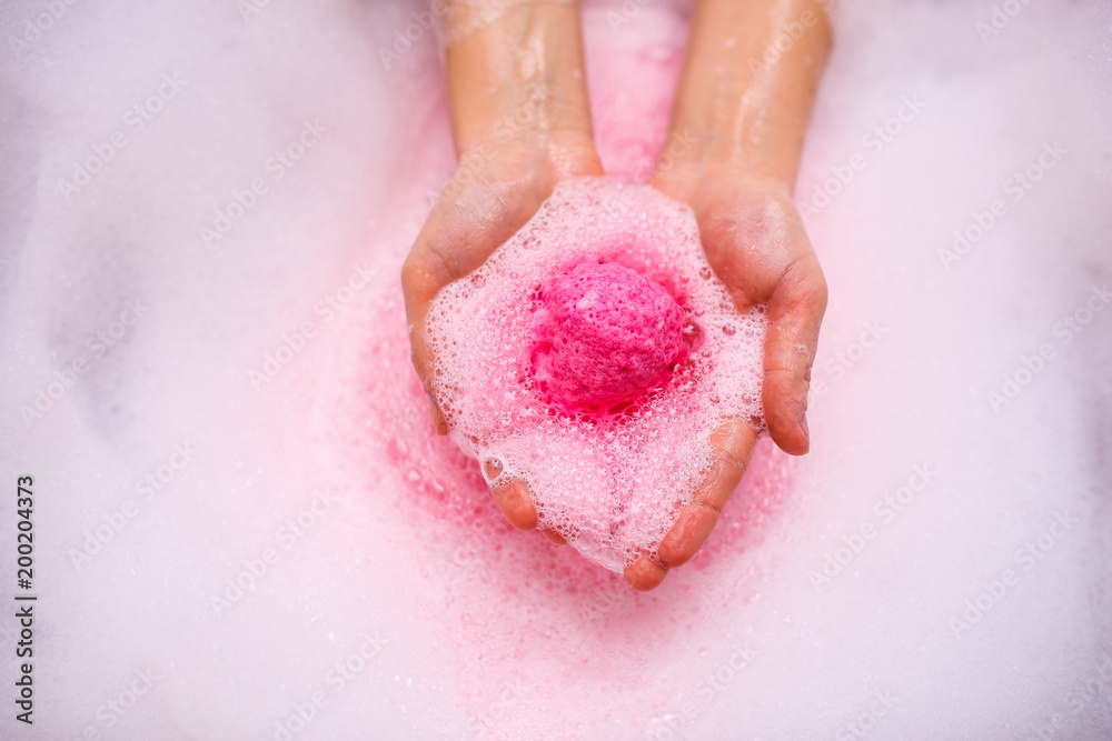 bath salt ball dissolves in the hands. ball of salt dissolves in water. Colored bath bombs