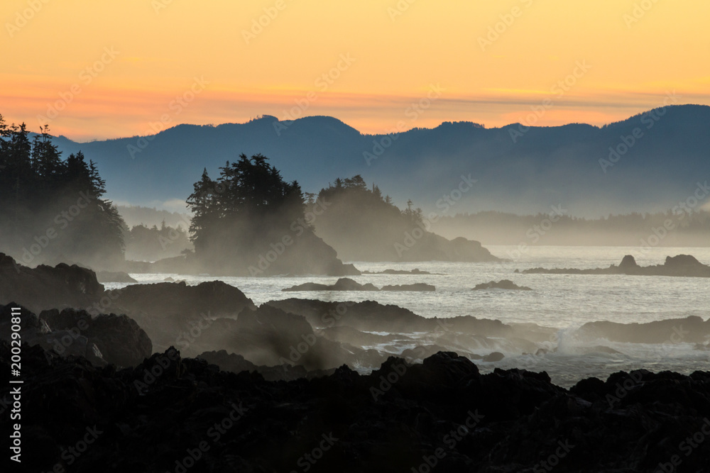 Dramatic dawn over rocky coast of Vancouver Island.