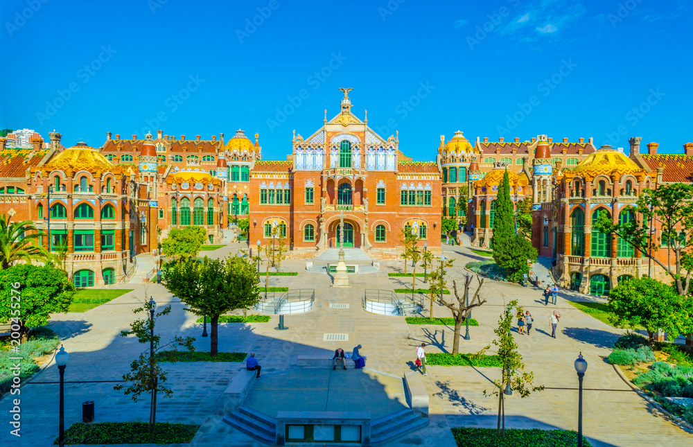 View of the former Hospital de la Santa Creu i Sant Pau in Barcelona, Spain.
