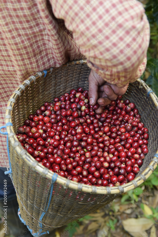 Fresh coffee bean in basket