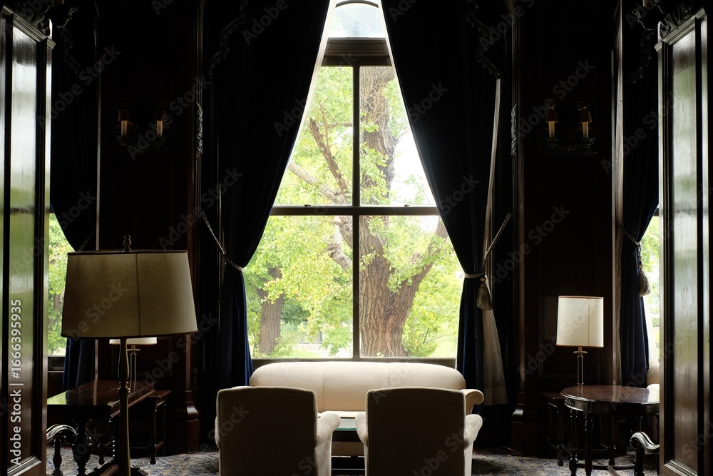 Roasted coffee beans get out of overturned glass jar on homespun tablecloth, selective focus, side view
