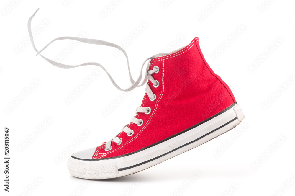 Single red sneaker on white background