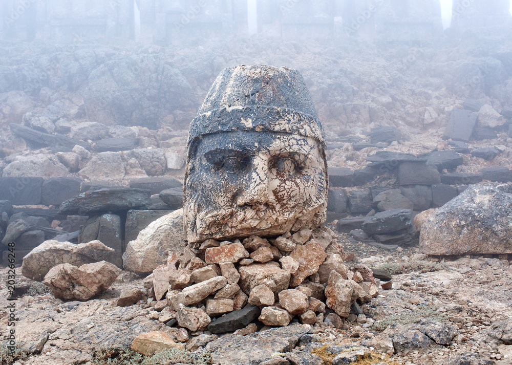 Ruined ancient stone statue of Zeus on the top of Nemrut mount, Anatolia, Turkey