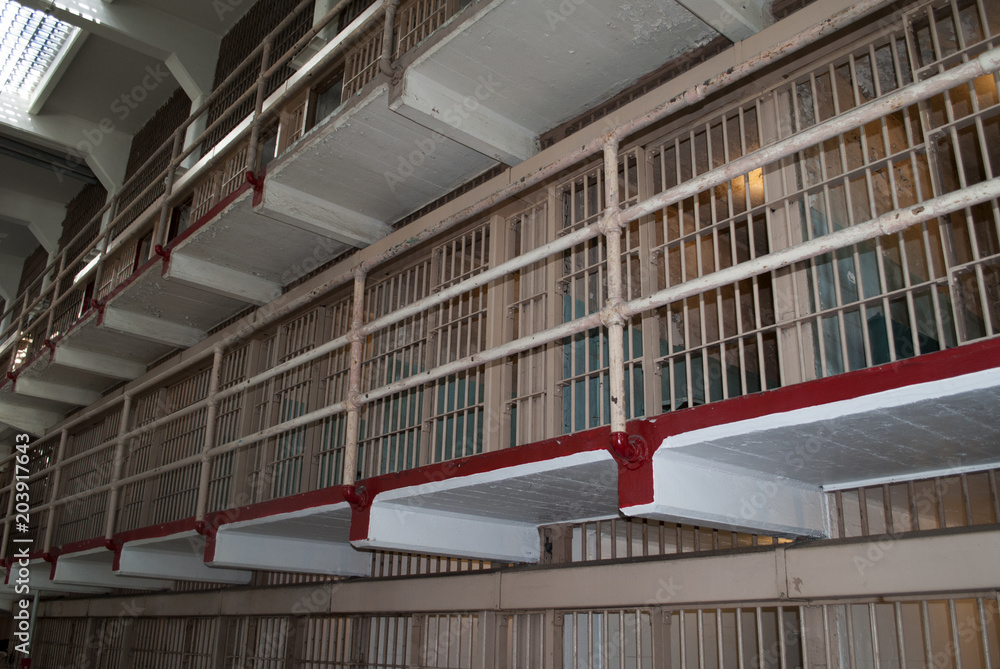 several rows of prison cells on Alcatraz Island, San Francisco, California
