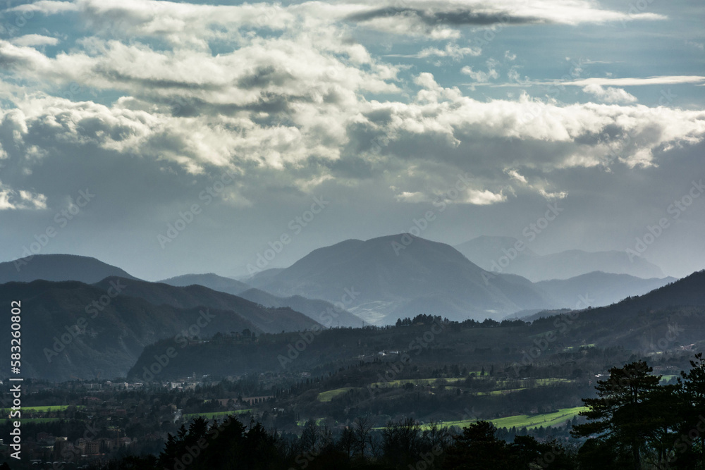 View of the Alster lake and white grace swan swimming on Alster Lake in Hamburg on a sunny day