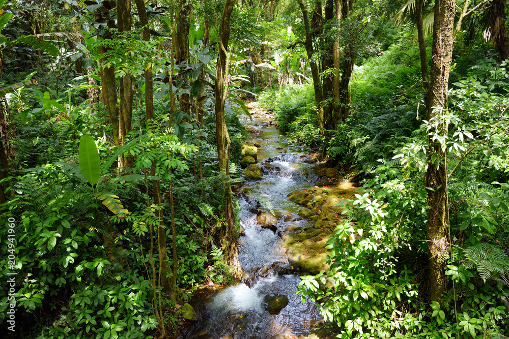 Lush tropical vegetation of the Hawaii Tropical Botanical Garden of Big Island of Hawaii