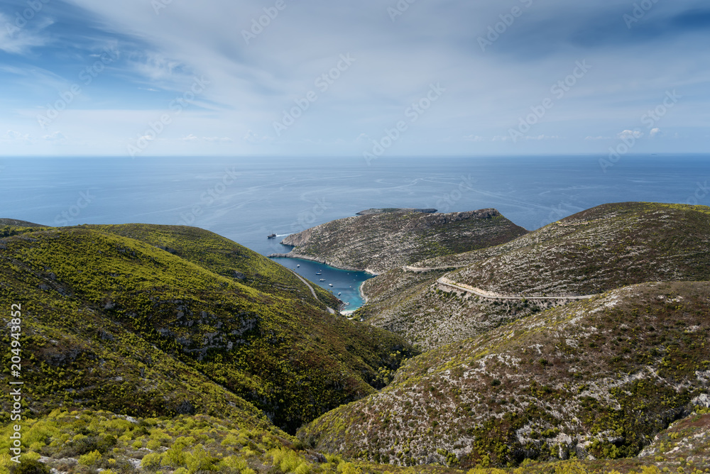 Beautiful summer seascape from the coast of Zakynthos Island, Greece. The Beautiful Lagoon of the port of Porto Vromi.