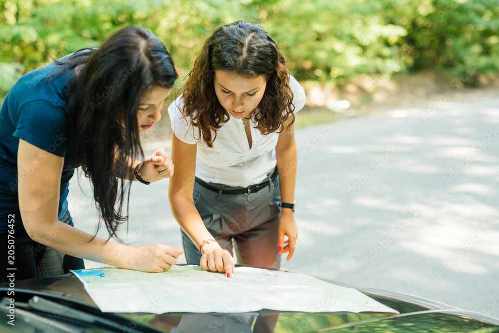 Woman searching on map