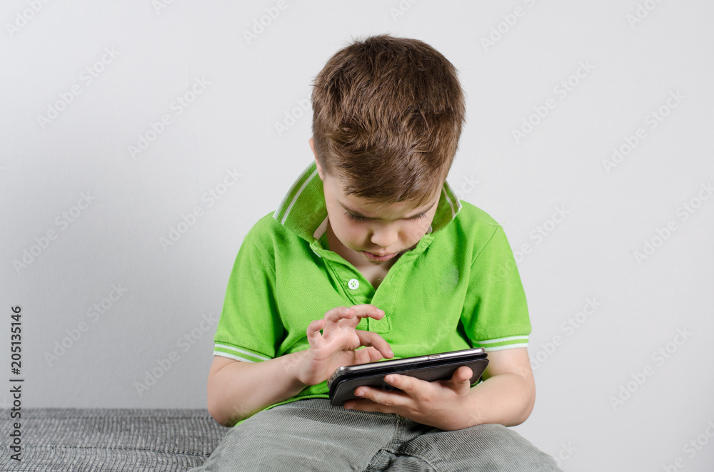 Kind spielt mit dem Smartphone in einem Unnatürlichen Körperhaltung