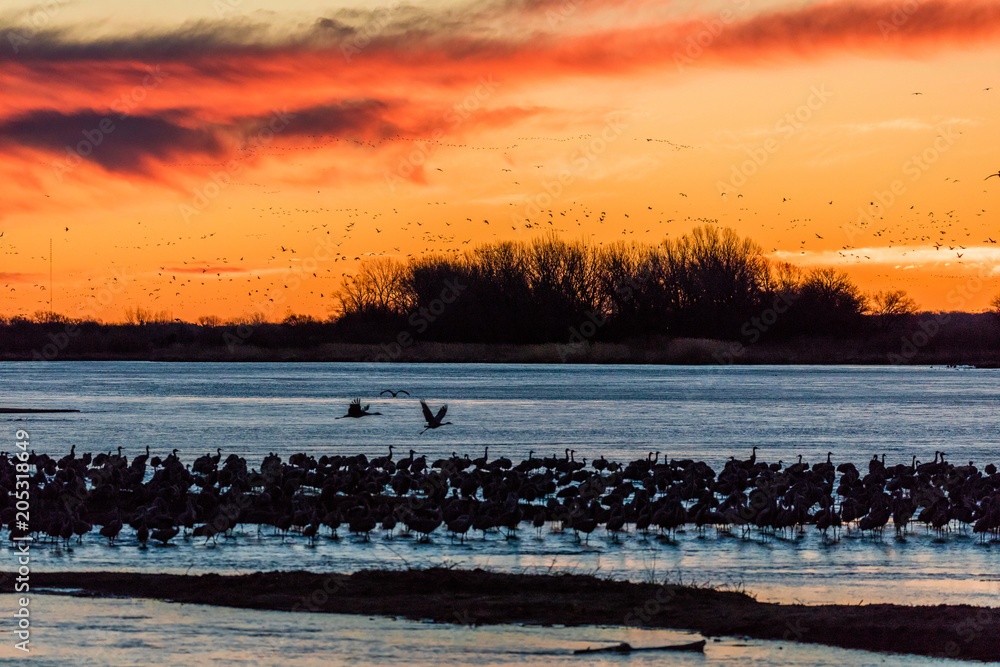 Grand Island, Nebraska -PLATTE RIVER, UNITED STATES Migratory water fowl and Sandhill Cranes are on their spring migration from Texas and Mexico, north to Canada, Alaska, and Siberia