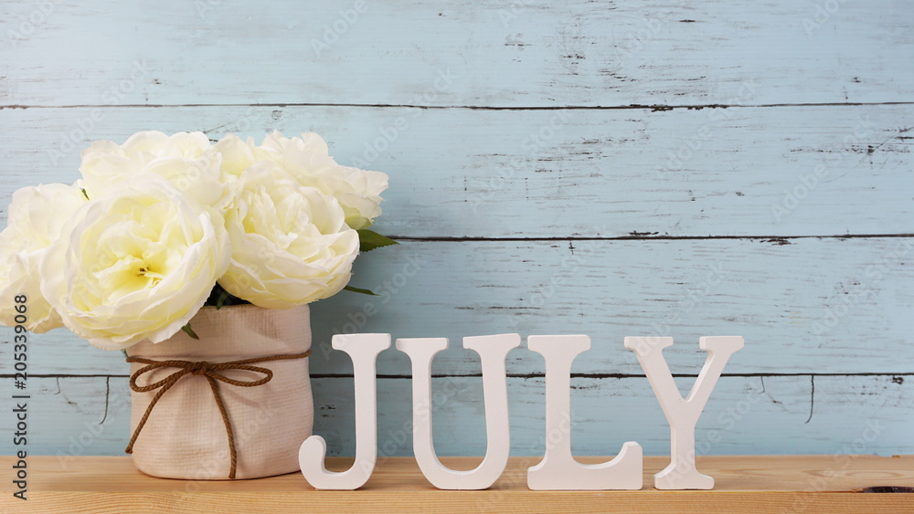 july alphabet letter with space background