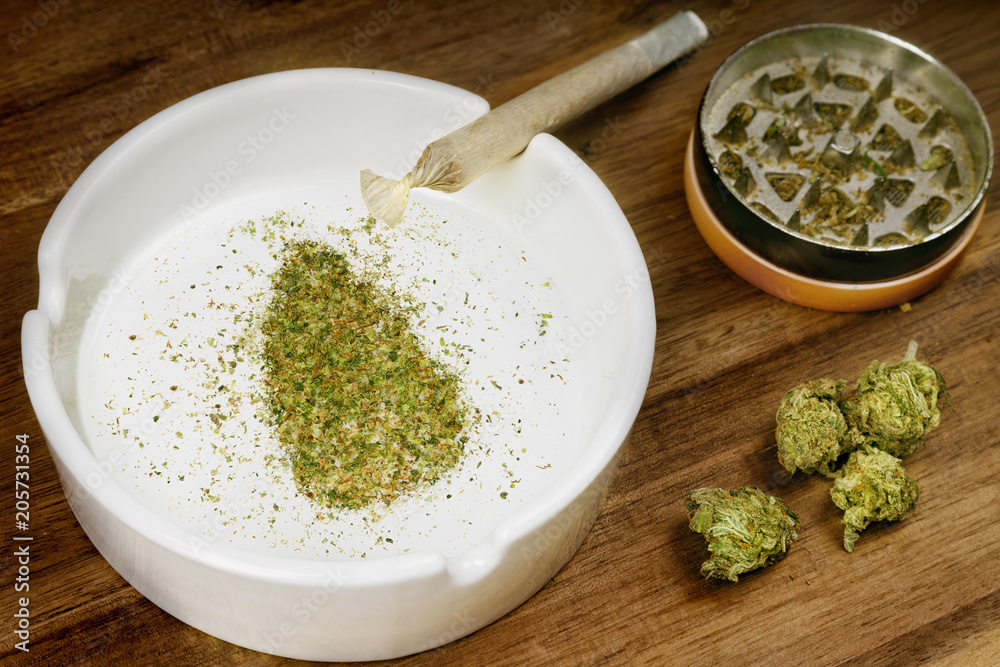 Ground weed in the shape of Sri Lanka with a joint. (series)