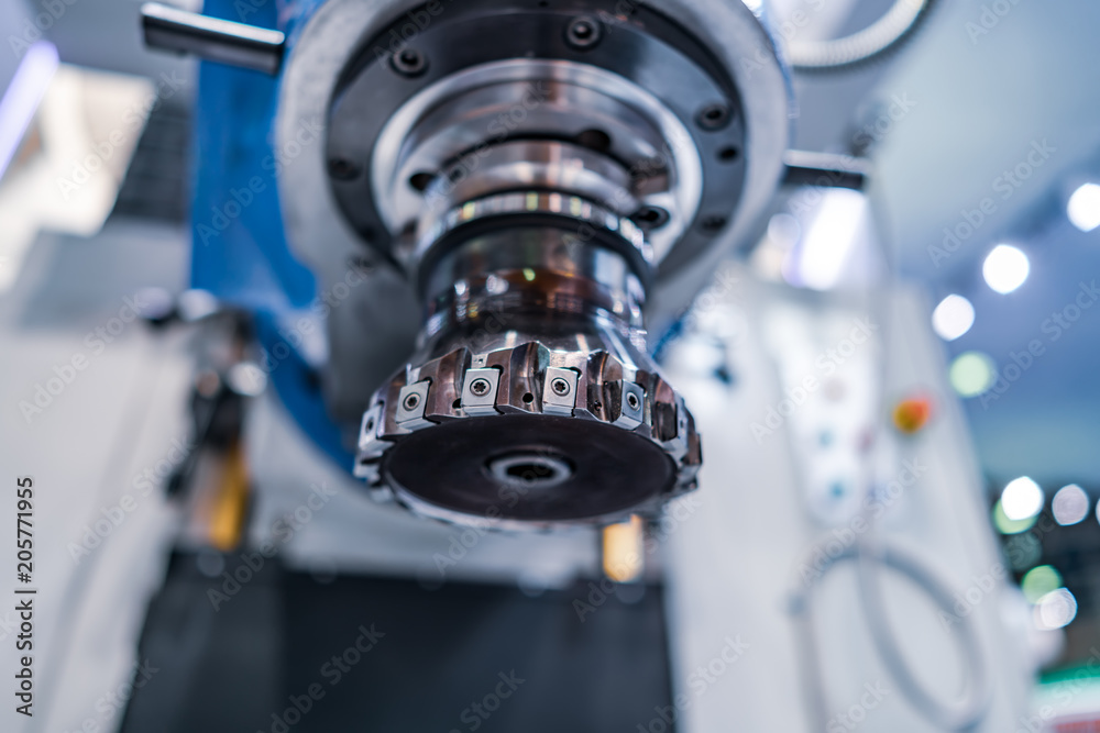 Metalworking CNC milling machine. Cutting metal modern processing technology.