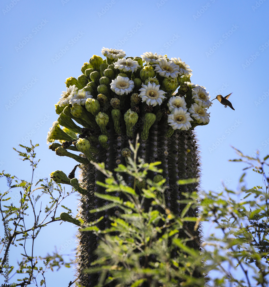 Saguaro cactus in bloom on Mt. Lemmon, Arizona.