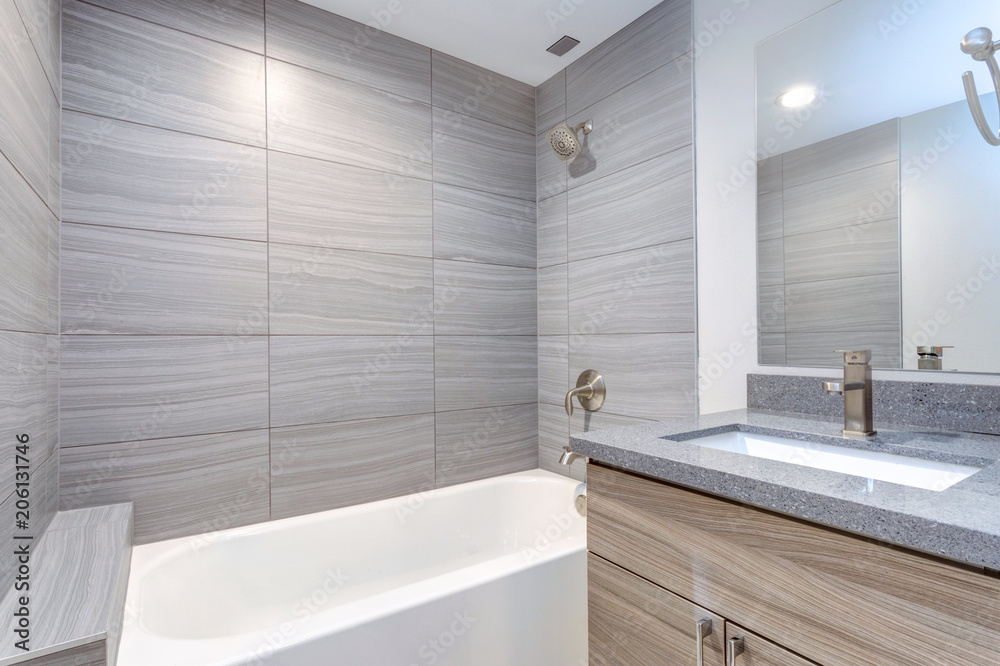 Interior of grey modern bathroom