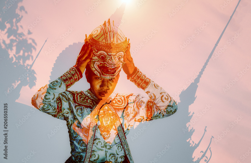 Double exposure Khon the Identity that reflects the art and culture of Thailand.