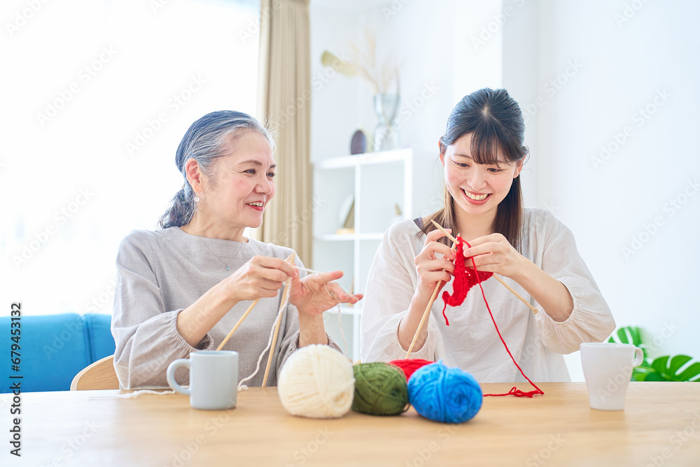 Beach straw umbrellas or palapas and sunbeds on the sandy deserted sea shore. Cargo ship is on far background. Cloudy blue sky.