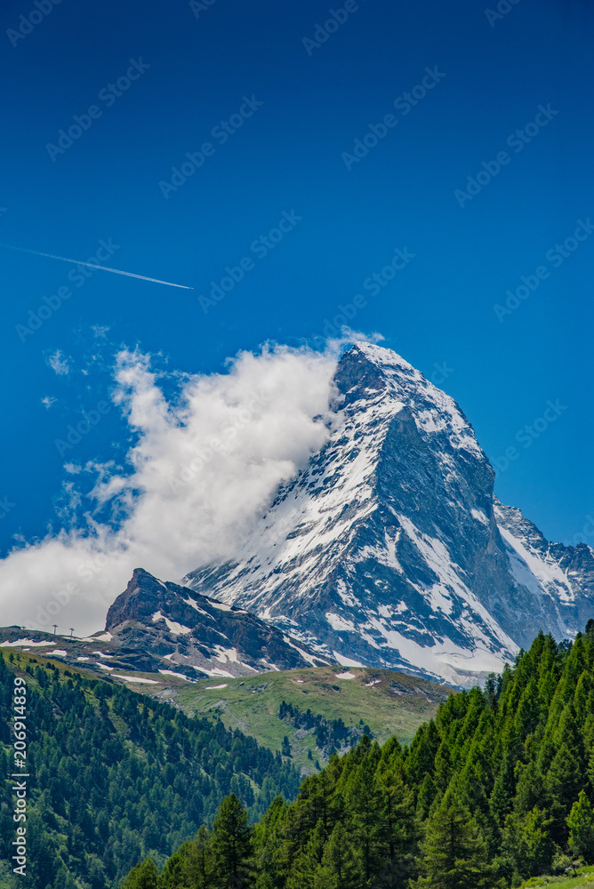 Detail of Matterhorn, Zermatt, Switzerland with clearly sky