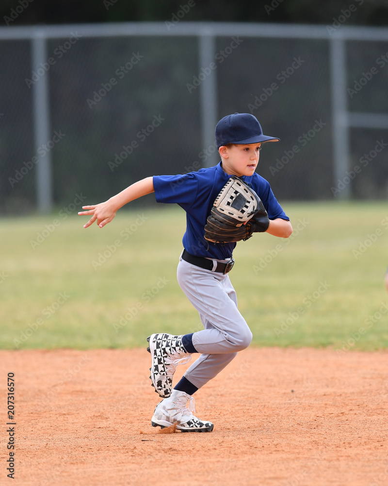 Young boy playing youth baseball