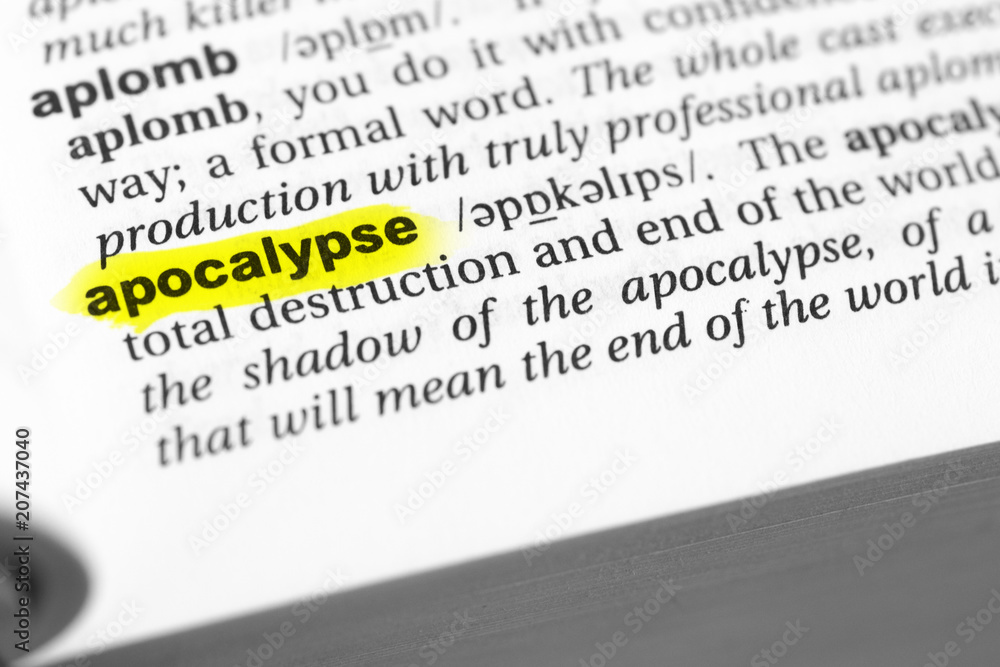 Highlighted English word "apocalypse" and its definition in the dictionary