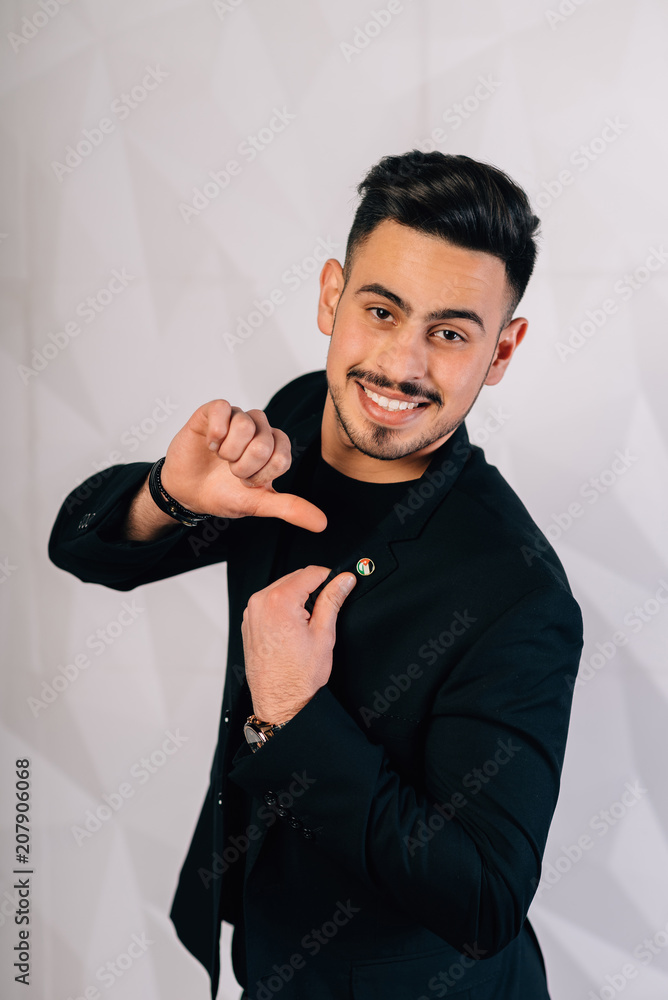 Portrait of a man with beard from afghanistan. A man from Afghanistan with a symbol of a warp on clothes