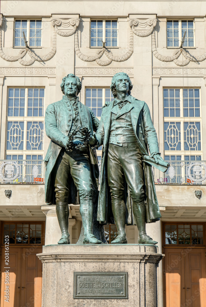 Monument to Goethe and Schiller before the National-theater in Weimar