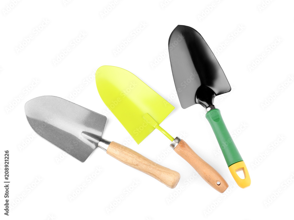 Gardening tools on white background