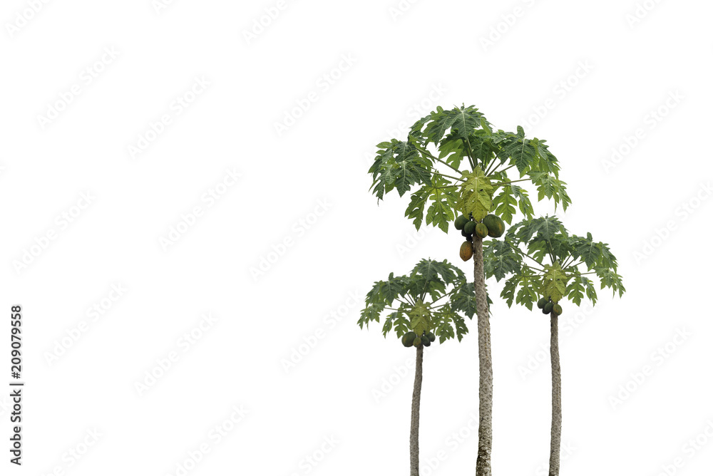 Organic papaya tree on isolated background.