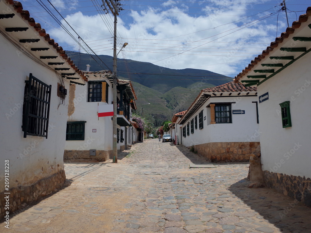 A traditional street in Villa de Leyva, Colombia