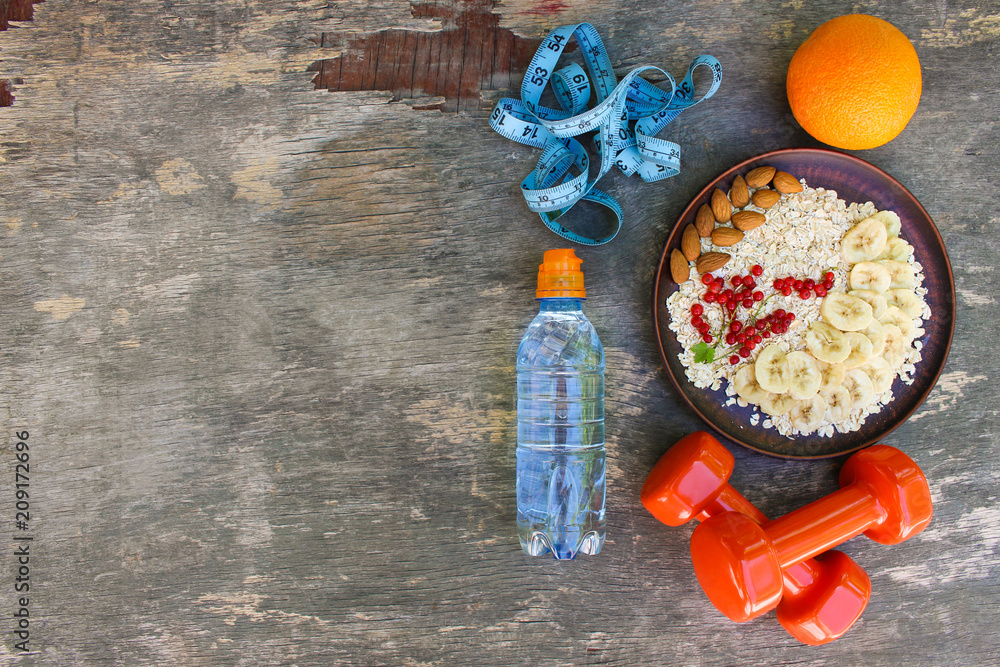 Concept healthy food and sports lifestyle. Proper nutrition. Top view. Flat lay.