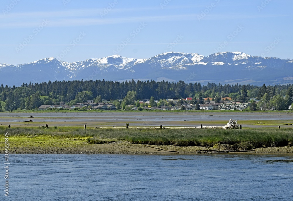 nature landscape at the Courtenay estuary during low tide, Vancouver Island British Columbia Canada