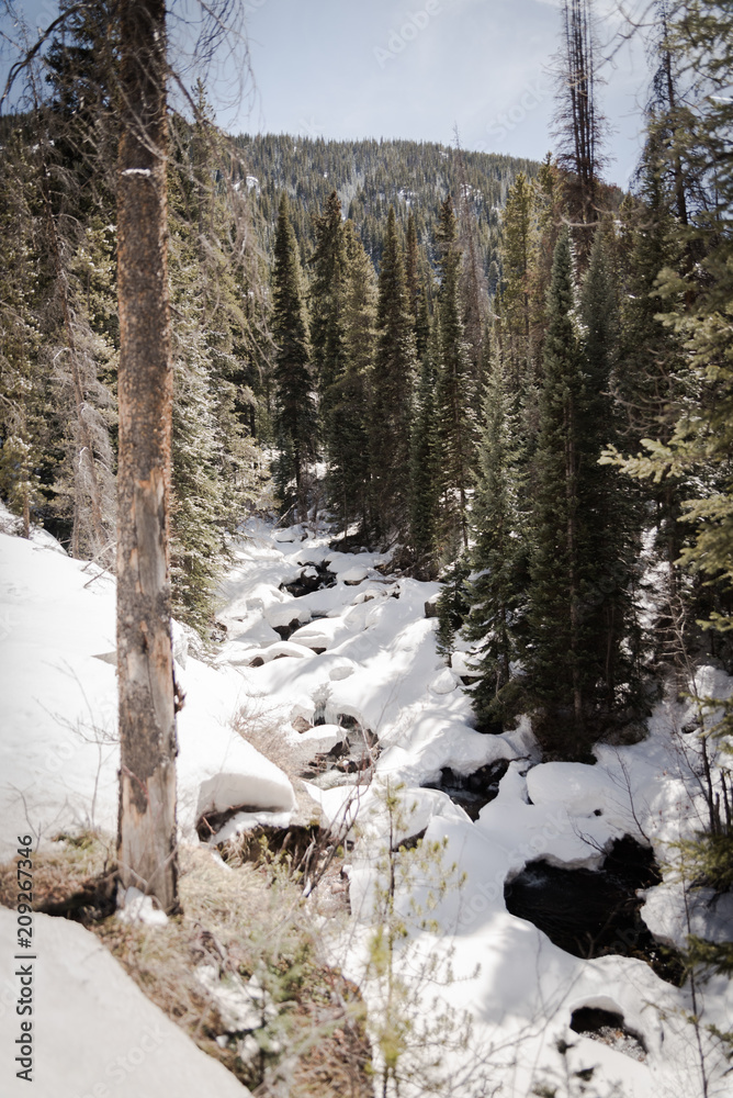 A snow covered river near Vail, Colorado.