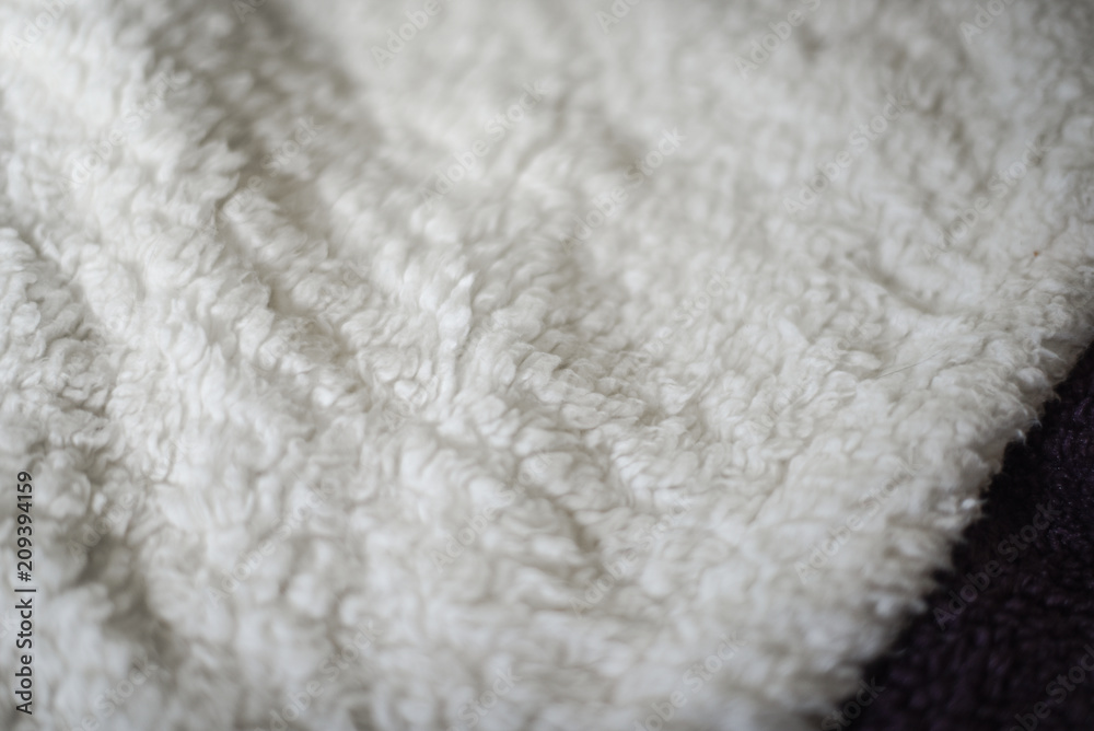 Close up of a white, wool textured blanket.