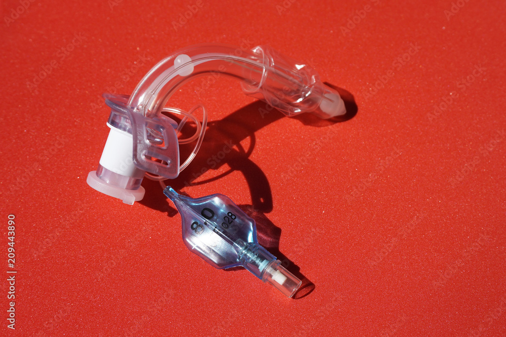 tracheostomy tube on a red background