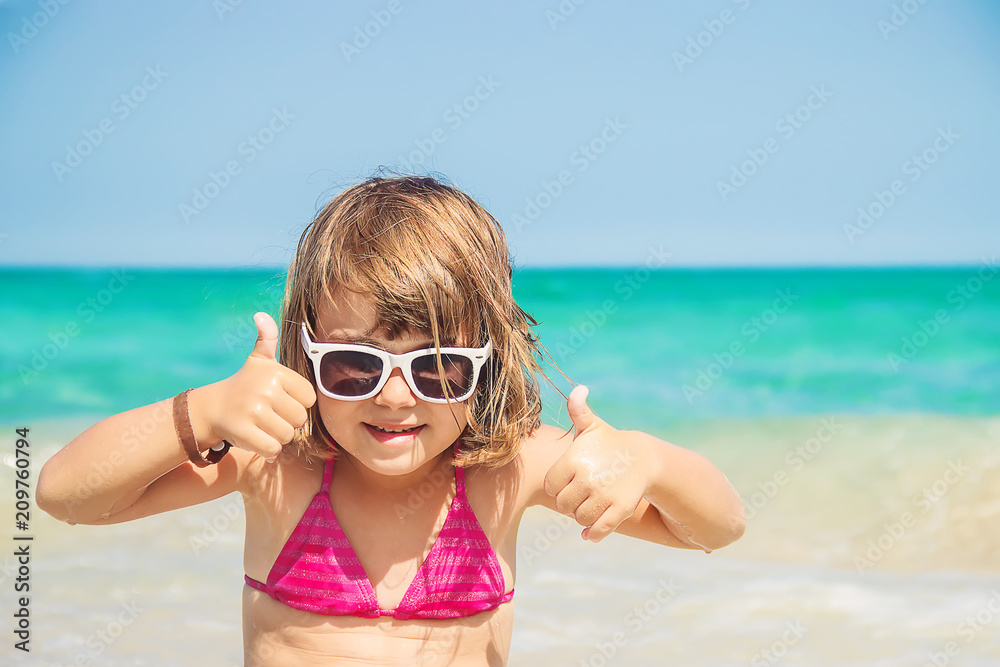 Child girl bathes on the sea and in the pool. Tunisia Mahdia. Selective focus.