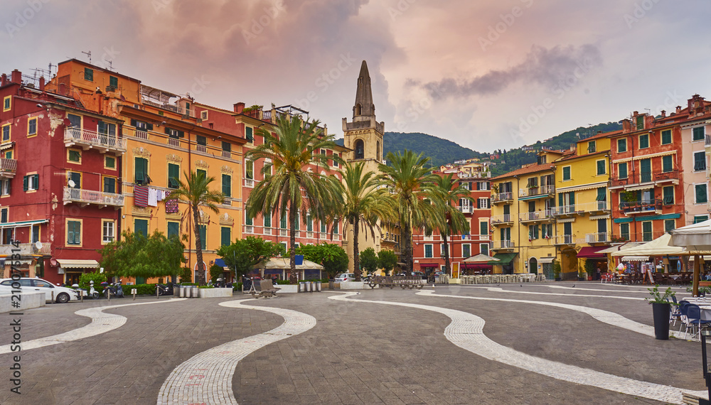 Central square (Piazza Mottino) Stormy Cloudy Weather Lerici, Liguria, Italy