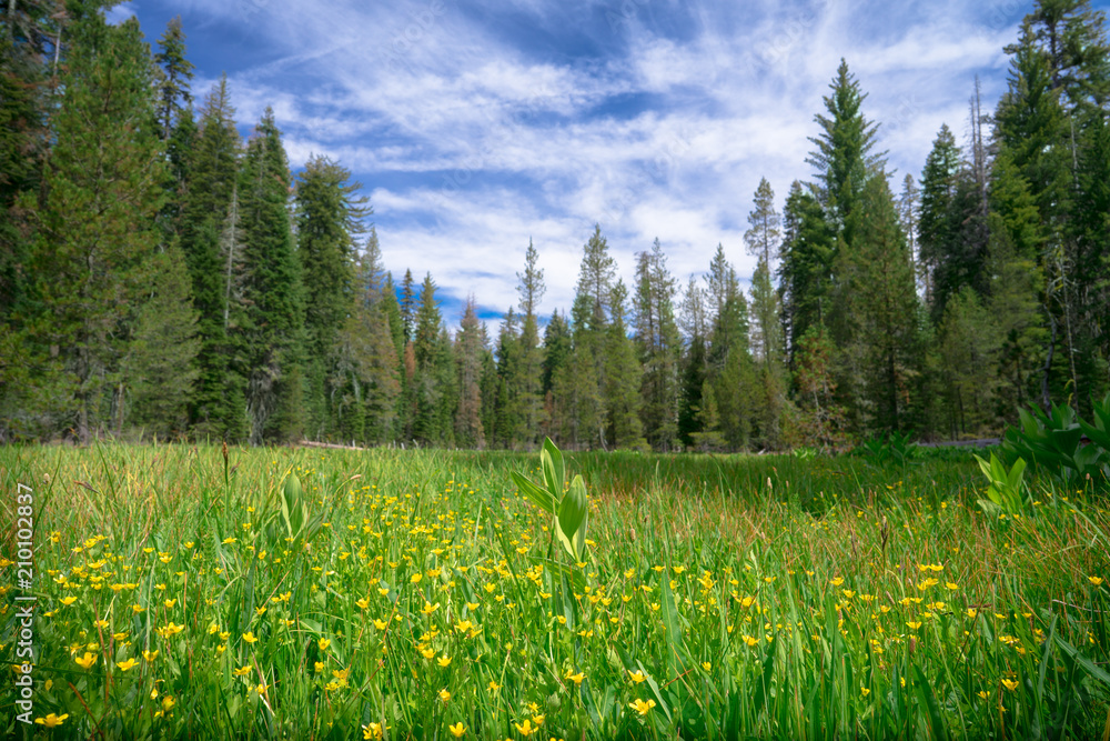 Green Forest Meadow With Yellow Wild Flowers - Yosemite National Park, California