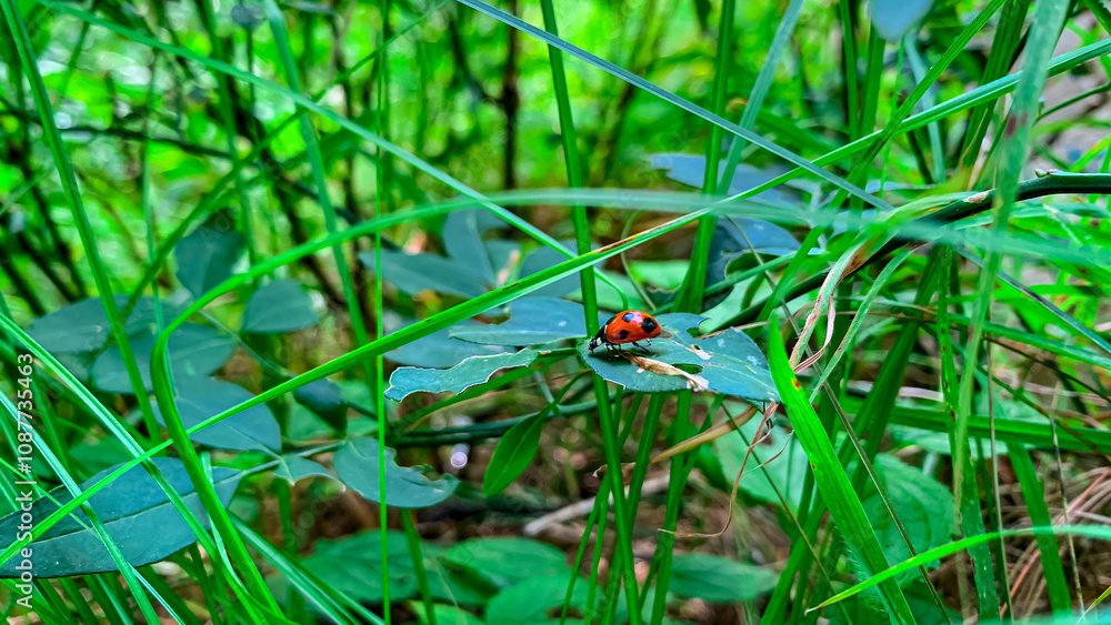 Two beautiful arnica grow in contact close up. Bright yellow fresh flowers with orange center on green background with copy space. Medicinal plants.