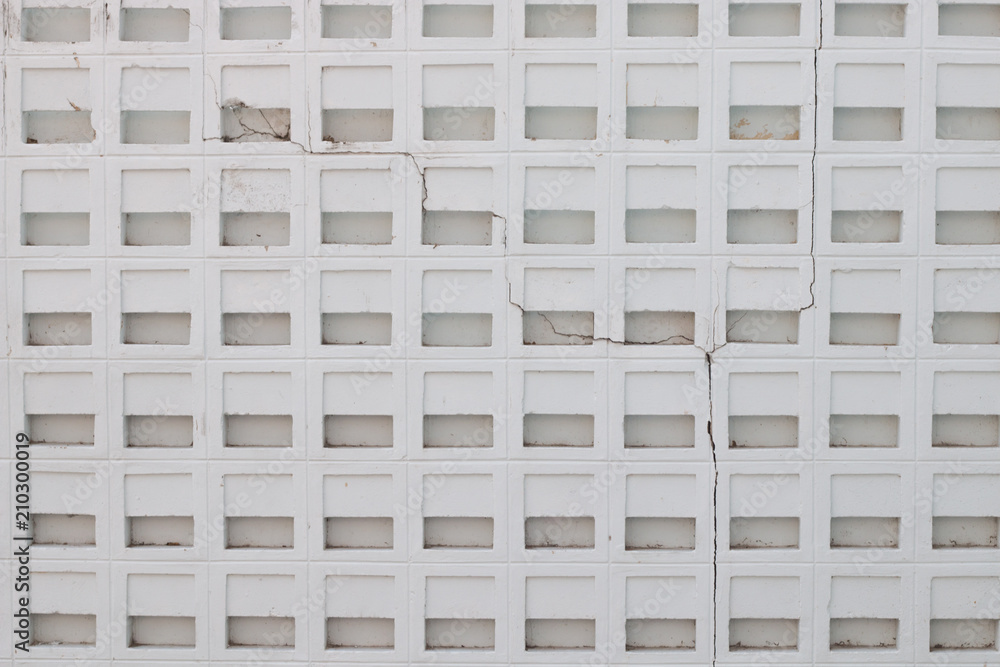 white old dirty cement wall . grunge style for space background . modern pattern building exterior . crack concrete and duct or hole surface .