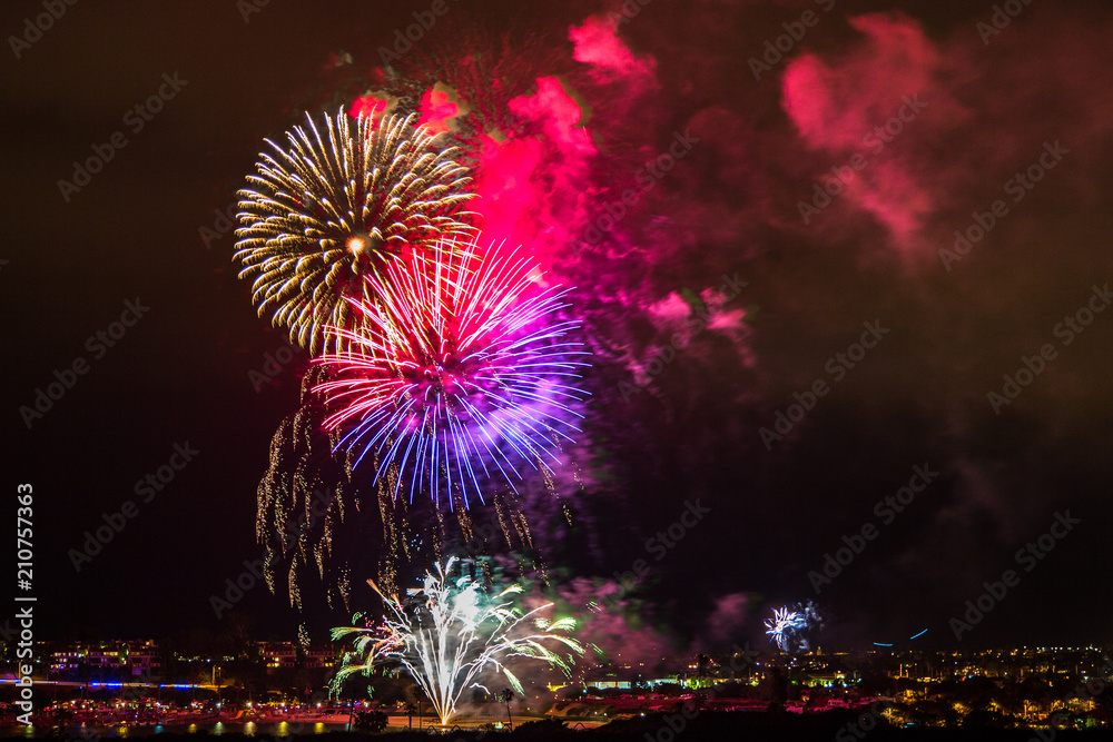 Red, White & Blue Starburst Fireworks on 4th of July at Newport Beach Back Bay, California