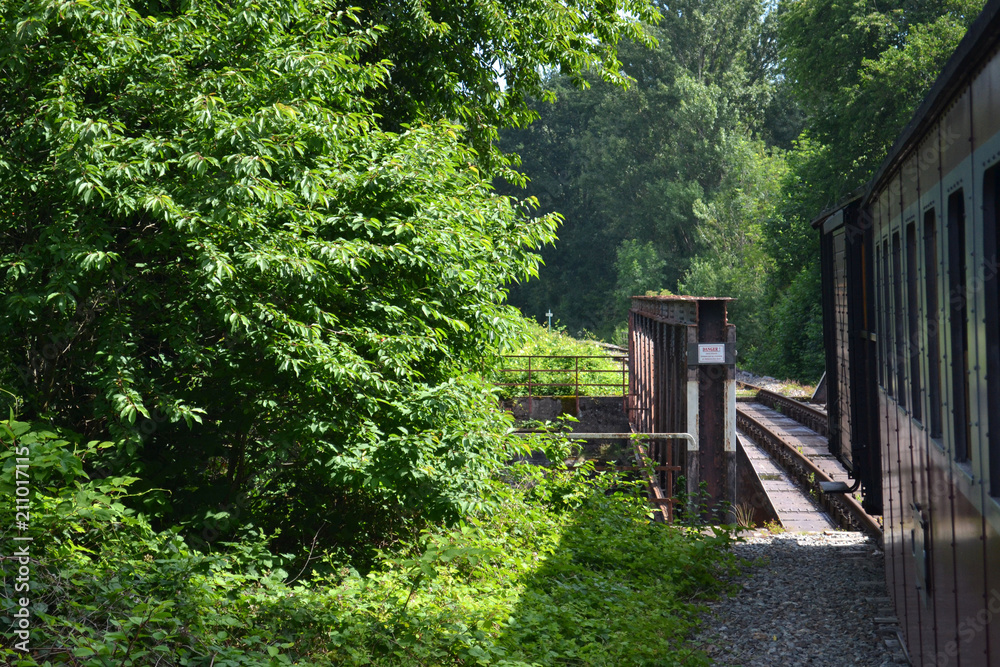 traversée d'un pont par le train à vapeur touristique, train de la vallée de la Doller, Vallée de la Thur, Alsace, Vosges, France
