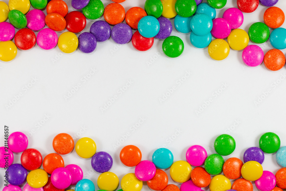 colorful sweet circle shape . sugar yummy balls candy on white background .