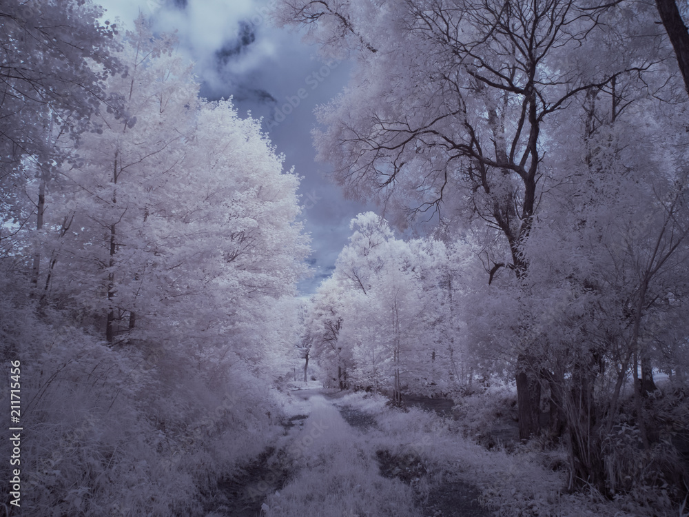 infrared photography - ir photo of landscape under sky with clouds - the art of our world in the infrared spectrum