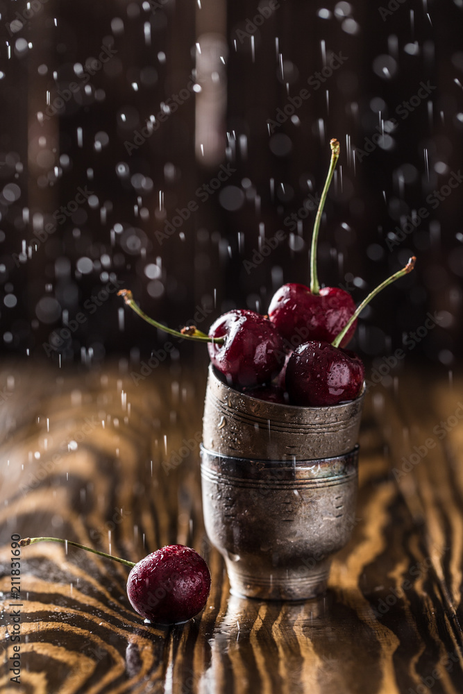 Fresh cherry with water drops