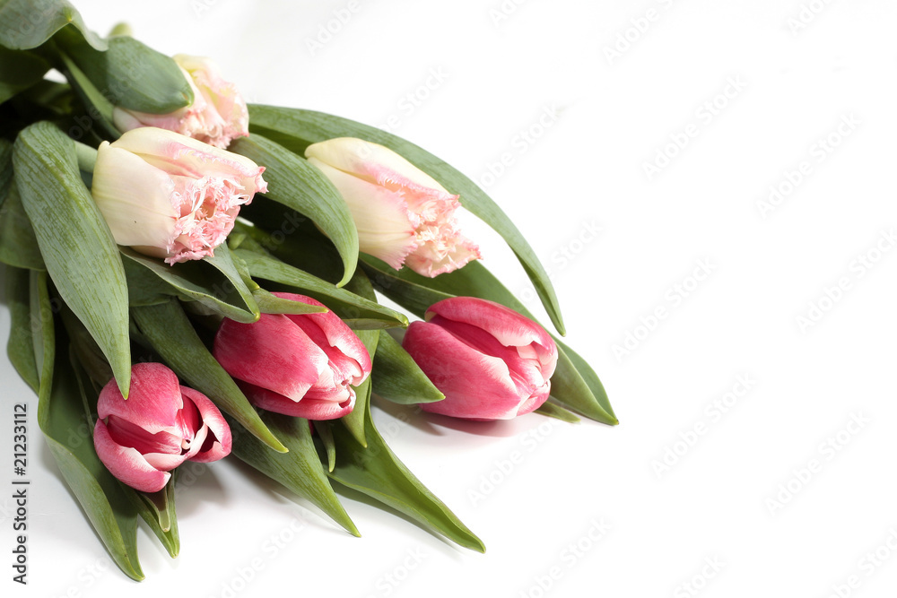 White and pink tulips