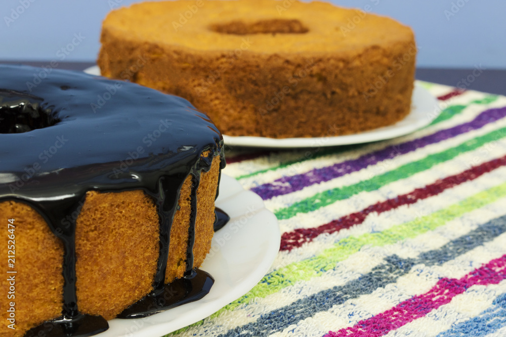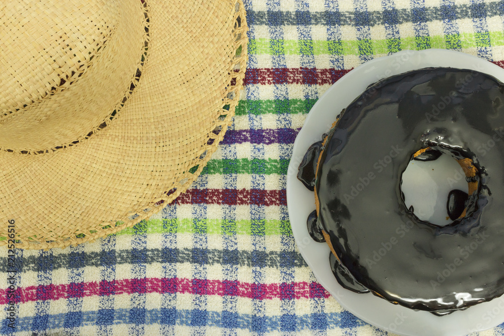 Traditional Brazilian dessert of chocolate carrot cake. Brazilian image of Junina's party culture concept.