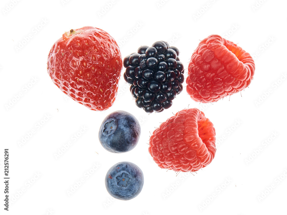Fresh, beautiful, large raspberries blueberries, strawberries, blackberries photographed in macro close-up Packed in a container in high quality.