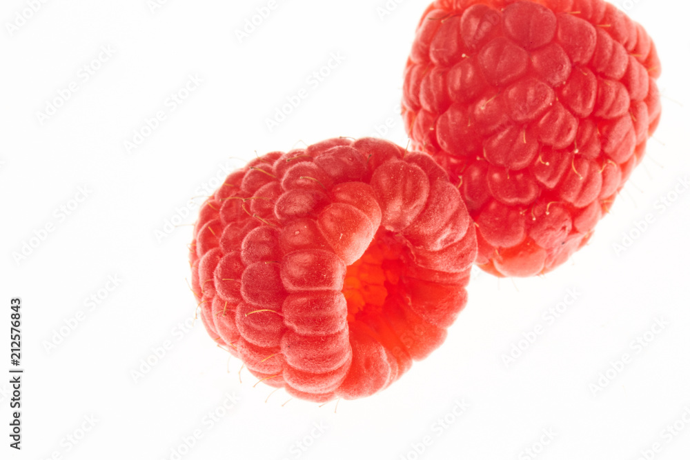 Fresh, beautiful raspberry berries close-up on white background in high quality
