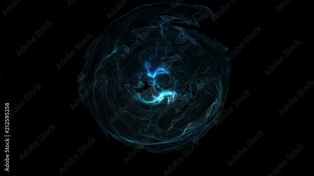 Blue energy sphere distortion abstraction animated background. Plasma sphere with energy charges.